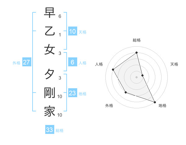 早乙女 夕剛家さんを姓名の画数から五運を鑑定