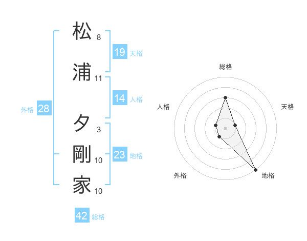 松浦 夕剛家さんを姓名の画数から五運を鑑定
