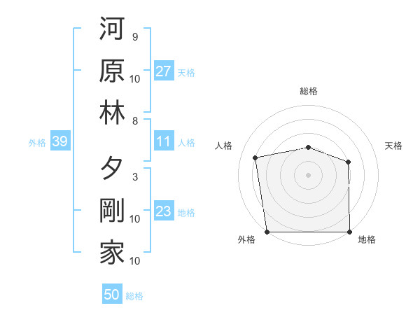 河原林 夕剛家さんを姓名の画数から五運を鑑定