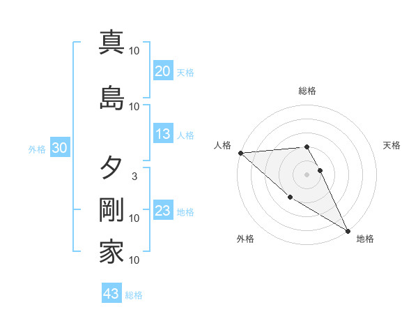 真島 夕剛家さんの総格は43画の2点!