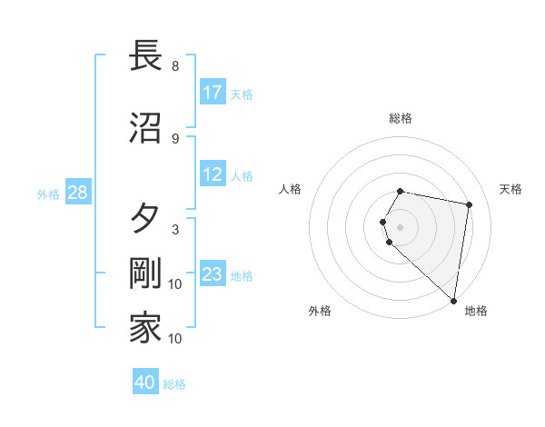 長沼 夕剛家さんの天格は17画の4点!