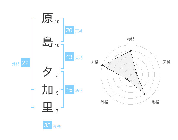 原島 夕加里さんを姓名の画数から五運を鑑定