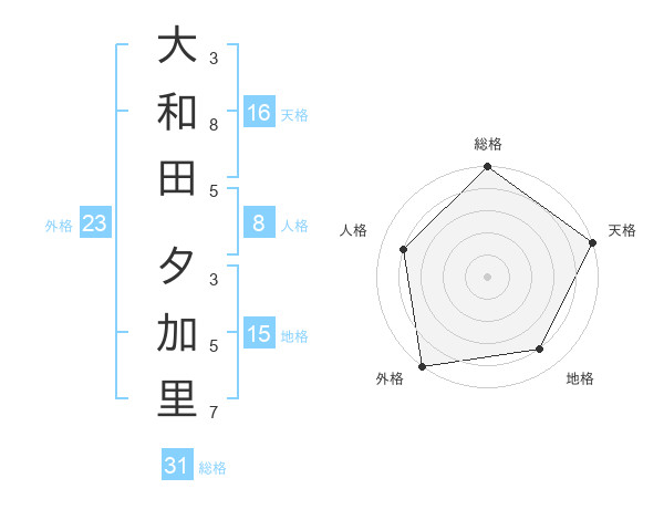 大和田 夕加里さんを姓名の画数から五運を鑑定
