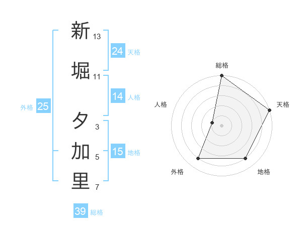 新堀 夕加里さんを姓名の画数から五運を鑑定