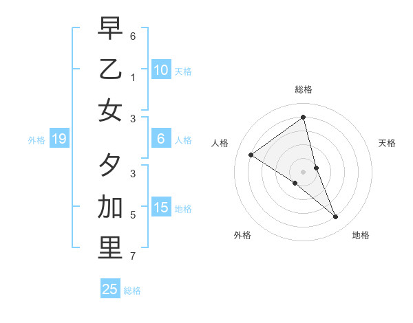 早乙女 夕加里さんを姓名の画数から五運を鑑定
