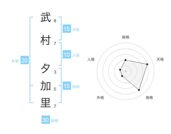 武村 夕加里さんの天格は15画の4点!