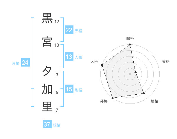 黒宮 夕加里さんの総格は37画の5点