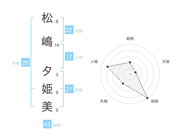 松嶋 夕姫美さんを姓名の画数から五運を鑑定