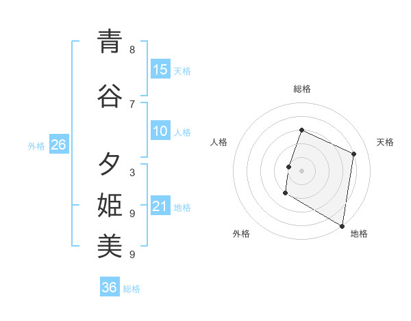 青谷 夕姫美さんの天格は15画の4点!