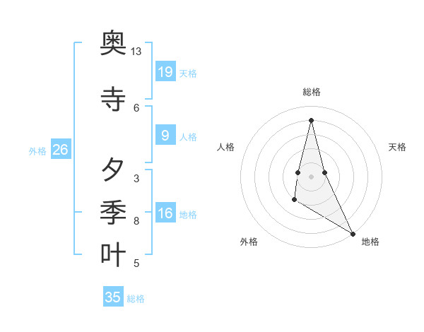 奥寺 夕季叶さんを姓名の画数から五運を鑑定