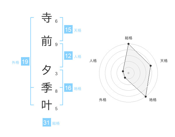 寺前 夕季叶さんを姓名の画数から五運を鑑定