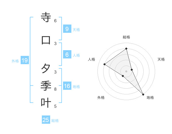 寺口 夕季叶さんの地格は16画の5点!