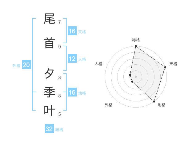 尾首 夕季叶さんの天格は16画の5点!