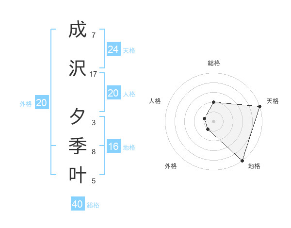 成沢 夕季叶さんを姓名の画数から五運を鑑定