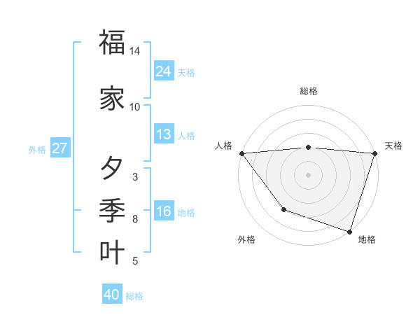 福家 夕季叶さんを姓名の画数から五運を鑑定