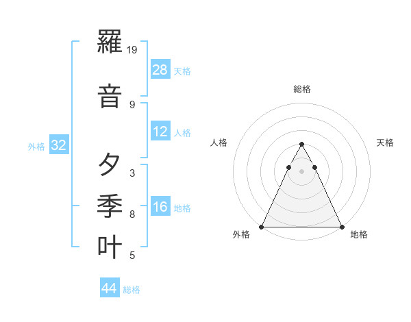 羅音 夕季叶さんを姓名の画数から五運を鑑定