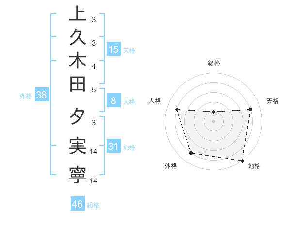 上久木田 夕実寧さんの外格は38画の4点
