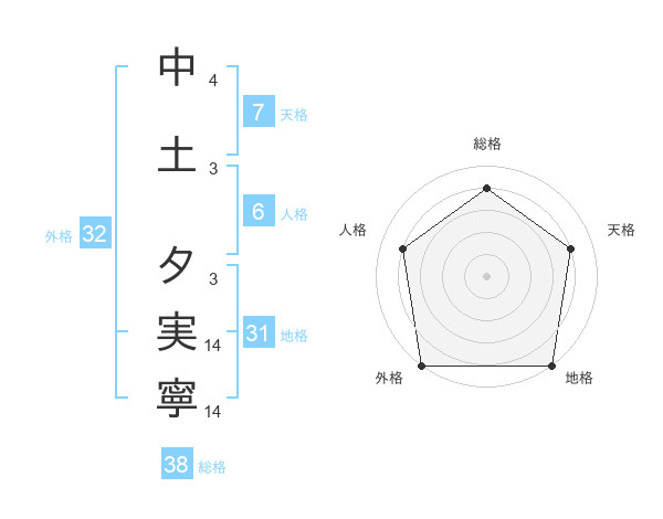 中土 夕実寧さんを姓名の画数から五運を鑑定