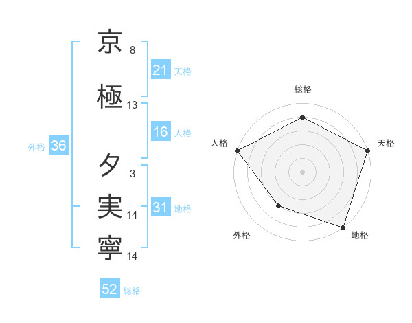京極 夕実寧さんの総格は52画の4点!