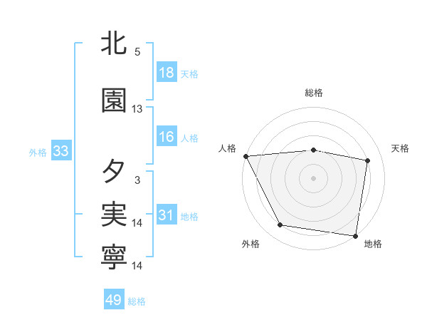 北園 夕実寧さんを姓名の画数から五運を鑑定