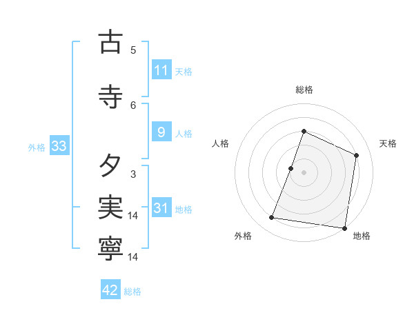 古寺 夕実寧さんを姓名の画数から五運を鑑定