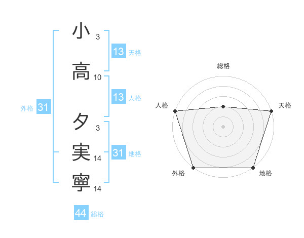 小高 夕実寧さんを姓名の画数から五運を鑑定