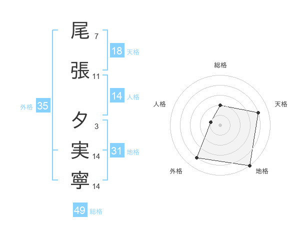 尾張 夕実寧さんを姓名の画数から五運を鑑定