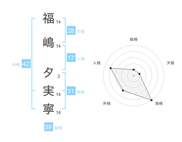 福嶋 夕実寧さんの総格は59画の1点!