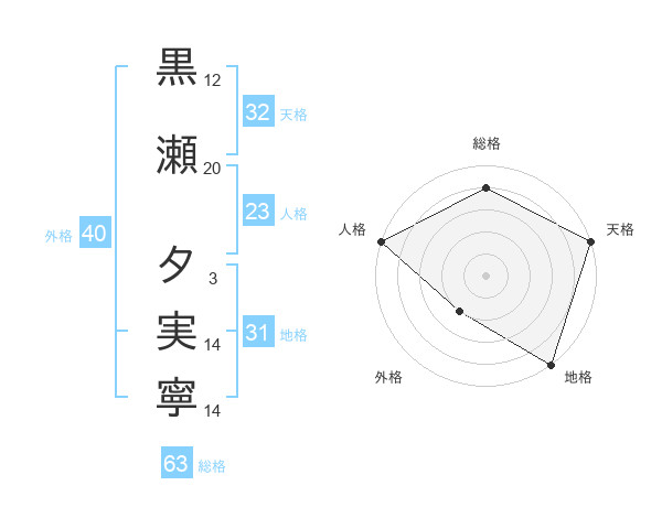 黒瀬 夕実寧さんの天格は32画の5点!