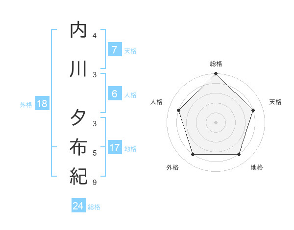 内川 夕布紀さんを姓名の画数から五運を鑑定