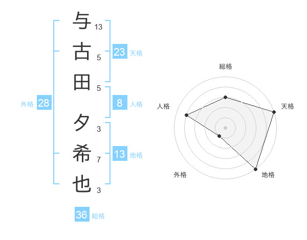 与古田 夕希也さんを姓名の画数から五運を鑑定