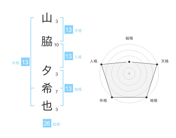 山脇 夕希也さんを姓名の画数から五運を鑑定