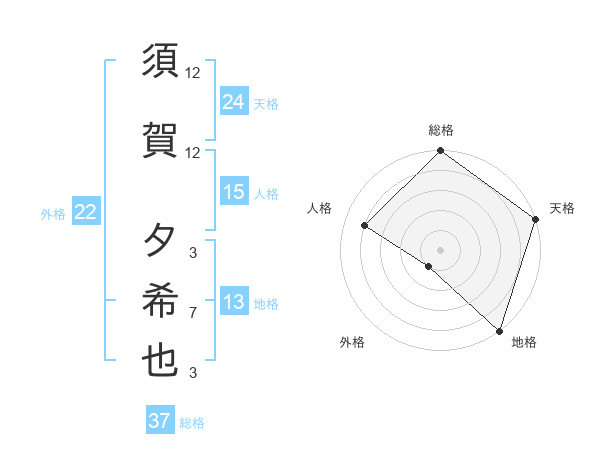 須賀 夕希也さんを姓名の画数から五運を鑑定
