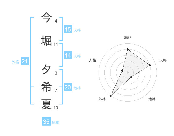 今堀 夕希夏さんを姓名の画数から五運を鑑定