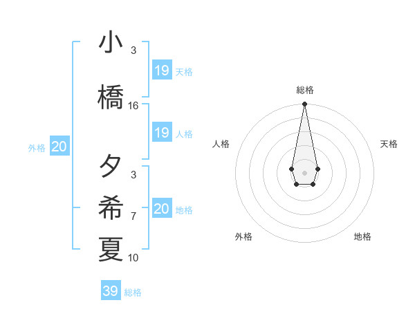 小橋 夕希夏さんを姓名の画数から五運を鑑定