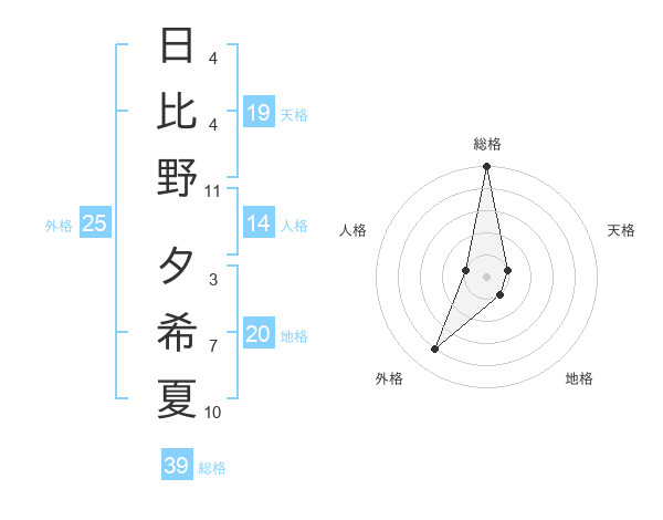 日比野 夕希夏さんを姓名の画数から五運を鑑定