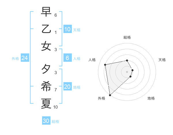 早乙女 夕希夏さんの総格は30画の2点!