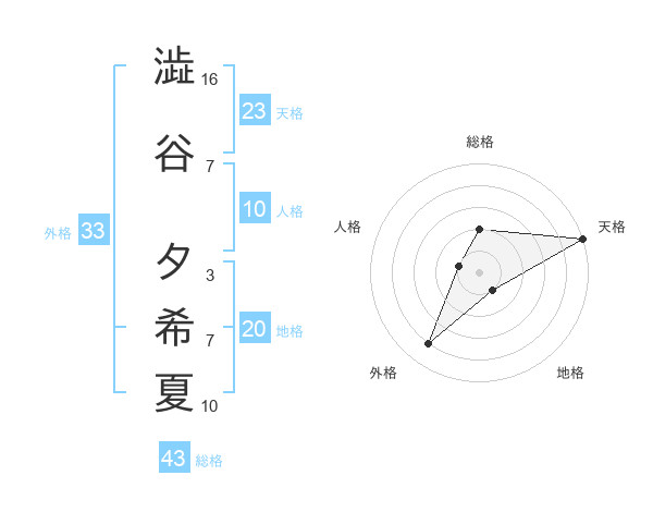 澁谷 夕希夏さんの天格は23画の5点!