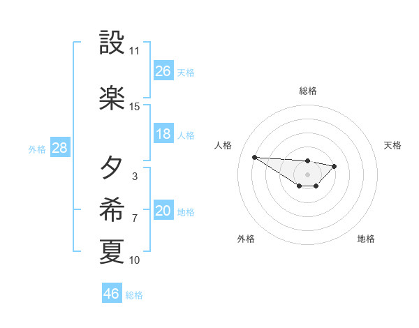 設楽 夕希夏さんを姓名の画数から五運を鑑定