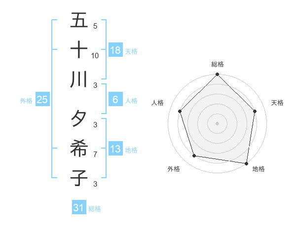 五十川 夕希子さんを姓名の画数から五運を鑑定