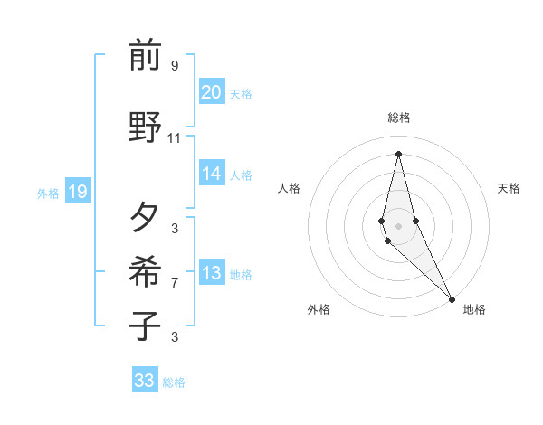 前野 夕希子さんの総格は33画の4点!