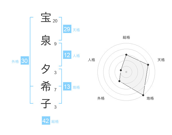 宝泉 夕希子さんの総格は42画の3点!