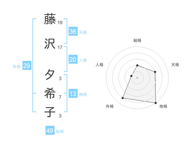 藤沢 夕希子さんの総格は49画の2点!