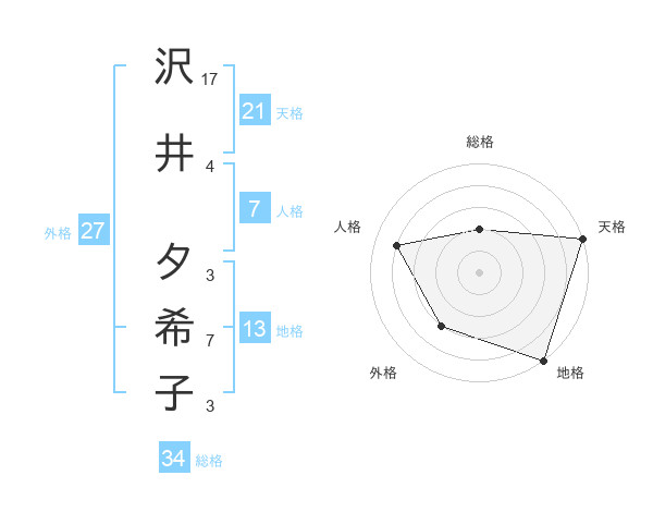 沢井 夕希子さんを姓名の画数から五運を鑑定