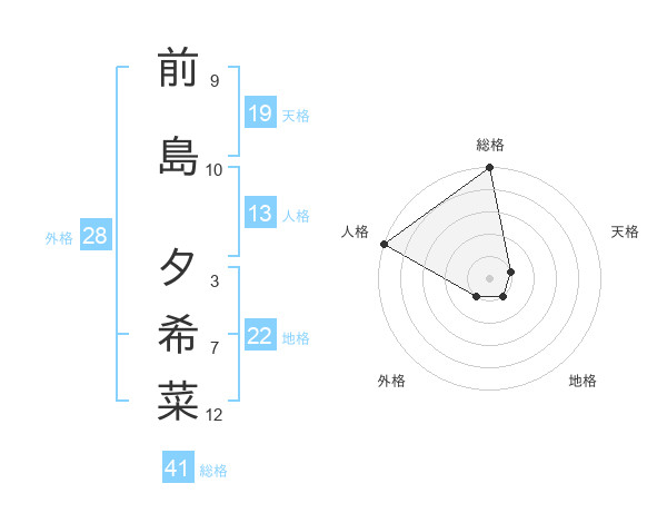 前島 夕希菜さんを姓名の画数から五運を鑑定