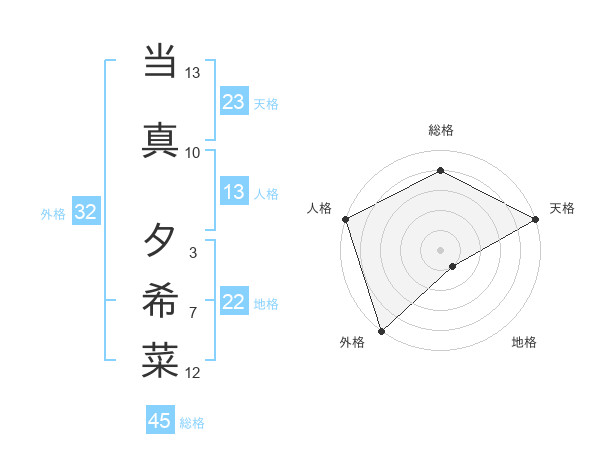 当真 夕希菜さんを姓名の画数から五運を鑑定