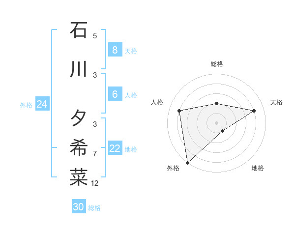 石川 夕希菜さんの天格は8画の4点!