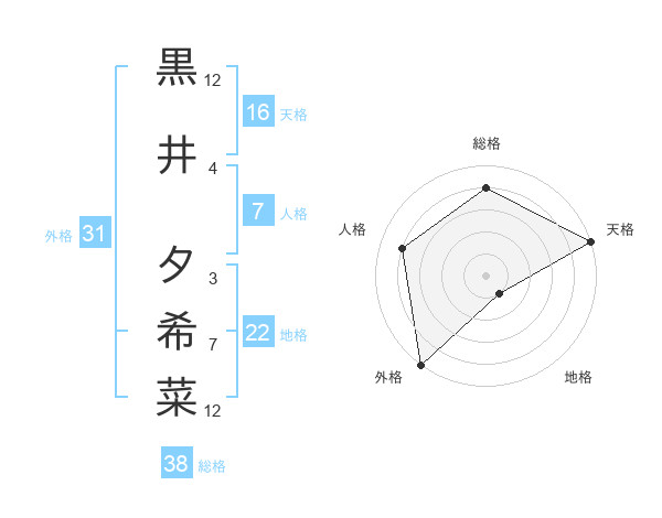黒井 夕希菜さんを姓名の画数から五運を鑑定