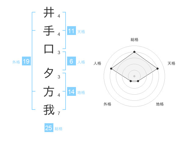 井手口 夕方我さんを姓名の画数から五運を鑑定