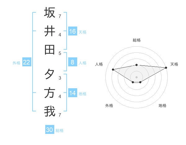 坂井田 夕方我さんを姓名の画数から五運を鑑定